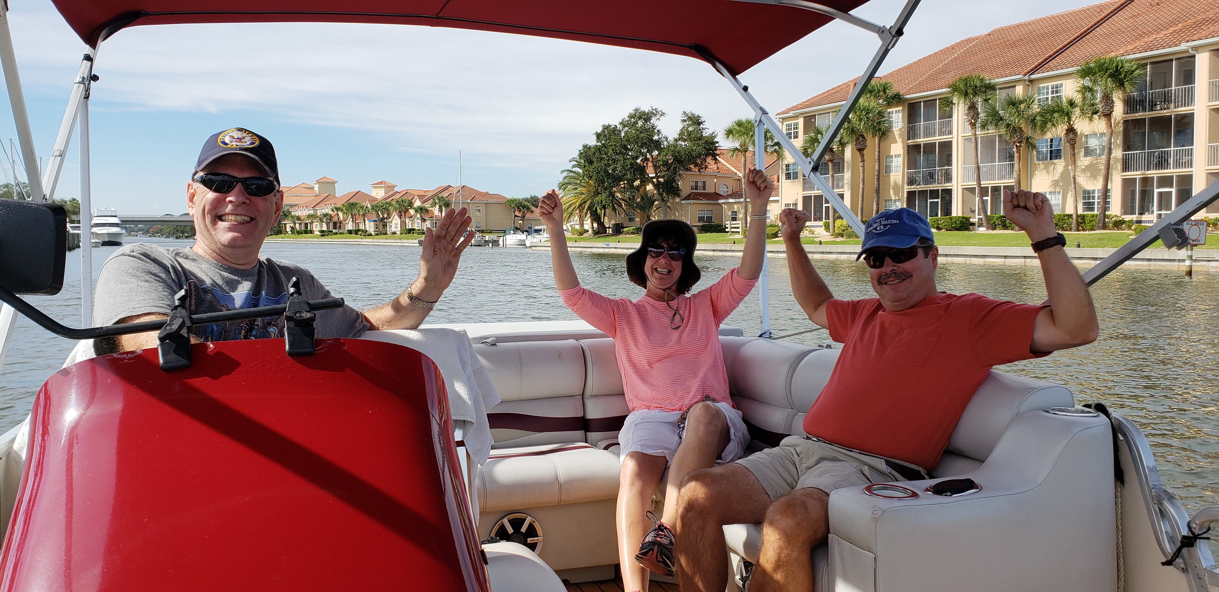 First, being this close to the Atlantic, there’s always a breeze; typically a pretty good one. With the sun down here, it’s prudent to keep the bimini up, but we learned it also acts as a bit of a sail when we’re trying to steer through the marina and park in the slip. Something else that was never a concern is the tide. Sometimes the canals are deeper than others, and it’s always good to know what’s going on with that. A marine battery is also a great idea, one we learned about the hard way after tooling up and down the river listening to the alarm going off and the voltage meter near zero. More than once we wondered if we were going to make it back, and one particular time it died just as we were attempting to park in the slip. Thank God the current moved us to another dock where we tied up until we could move it the next day. Oh, yes; the current. Between the current and the wind in the bimini top, there’s no such thing as always getting to the spot you’re aiming for. I actually don’t enjoy myself until we’re on the river, preferably where it’s deep.