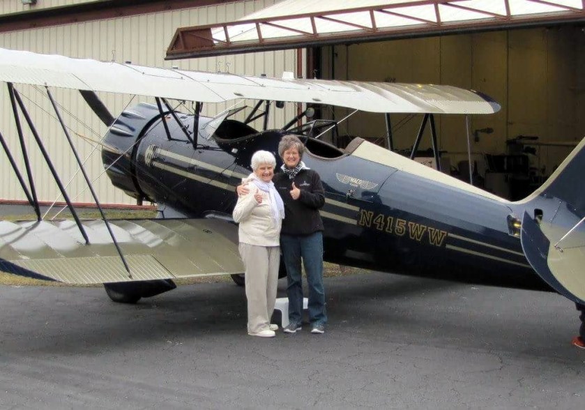 Mom’s cousin Rene, long-deceased, had been a pilot, himself, and she talked of him often as she shared his daredevil flying stories. Not long ago I surprised my then 89-year-old mom with a ride in an open-cockpit Waco bi-plane over St. Augustine, Florida. Mom has always been up for anything, and I knew she’d love it. Mike, our pilot in the back seat, was pretty pumped about taking his oldest passenger flying, extending the usual 20-minute flight to 45 minutes. I’ll never forget Mom’s face mirroring my own cheek-to-cheek grin as we took off feeling the wind and the power of that Waco. Over the oldest city, circling this way and that, out over the Atlantic we flew, entirely thrilled. Turning towards the shore, I leaned over to my mom and said, ‘Let’s tip our hats to Rene!’ And with a smile on our faces and sheer joy in our hearts, we saluted the sky.