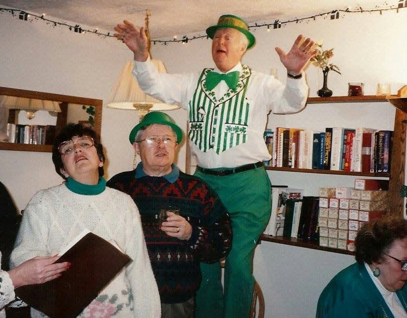 Today brings up wonderful memories of past Irish parties with Jan the piano player, Dad the entertainer, Mom the hostess with the mostess, and more fun, singing and laughter than oughta be legal! The annual St. Patrick’s Day singalong was a tradition that began way before my time but ended up including generations of O’Connor friends and family. While I’m sad because it’s over, I’m smiling because it happened. And I miss it ALL!!